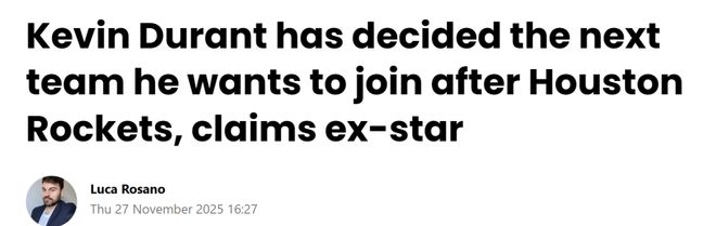 杜兰特还会离开火箭?佩顿爆料超音速即将回归:KD想在西雅图退役