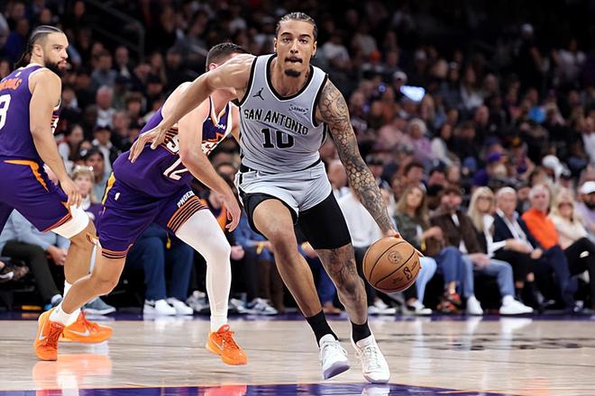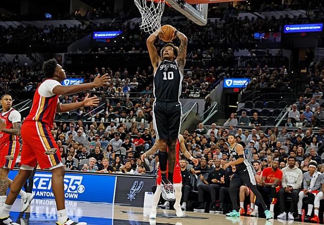 本场比赛中,马刺虽然取得了胜利,但是球队的替补锋线新星杰里米-索汉(Jeremy Sochan)的表现令人大跌眼镜。索汉全场出场7分35秒,投篮7中1,三分线外2中0,仅得到了2分3篮板的数据,还有1次失误和2次犯规,正负值为-7。索汉虽然出场时间不多,但是他也是在场上完成了多次出手,然而他的投篮选择很不合理,进攻效率极其糟糕,浪费了大量的出手机会,而且他在防守端的投入度和专注度都很不理想,都没有起到任何的作用,他在场上时球队的局面可以说是是一塌糊涂的水平,这也能够体现在他超低的正负值上。可能也是由于场上的效果实在是太糟糕了,马刺果断选择了将他弃用,而其他球员的状态又足够出色,他们最终也是比较顺利地拿下了比赛的胜利。